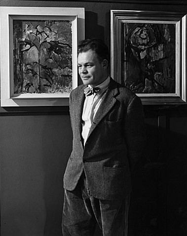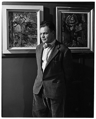 Harry Bowden poses with his painting at a show at the Louvre Gallery, San Francisco, January 4, 1951.