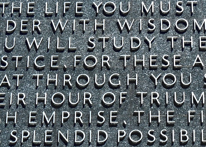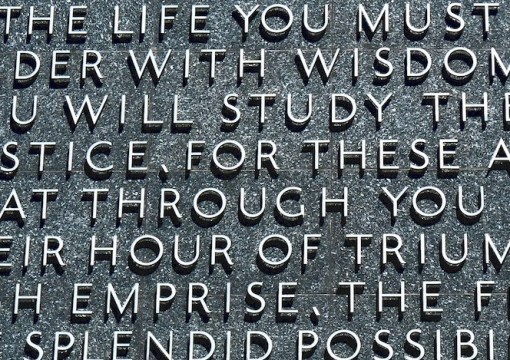 Excerpt of Benjamin Cardozo quotation on the wall at Boalt Hall, UC Berkeley.