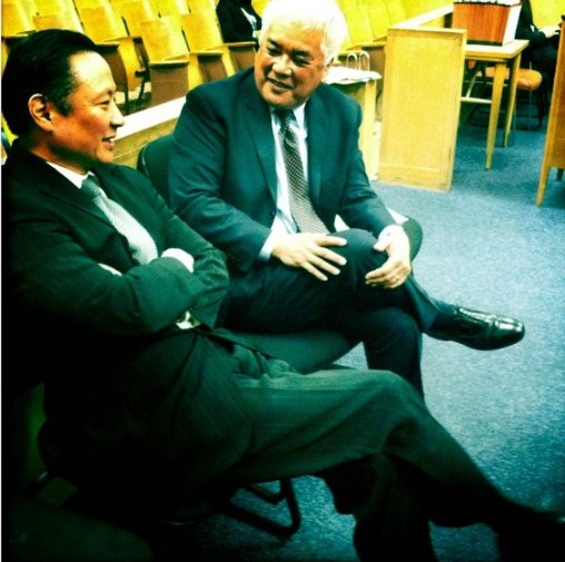 Jeff Adachi and Daro Inouye in Department 22 of the Hall of Justice, 2011. Photograph by Matt Gonzalez.
