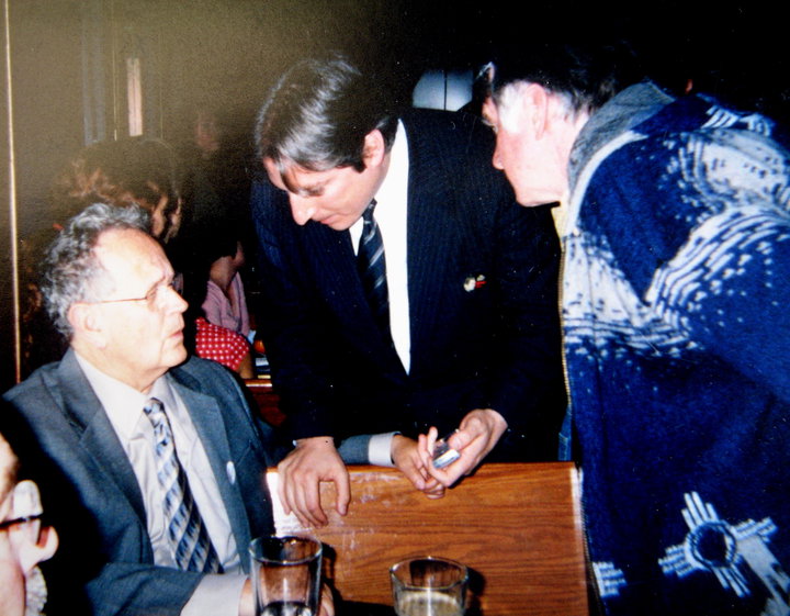 Peter Camejo and Matt Gonzalez election night 2004. Photograph by Lezlie Meyers.