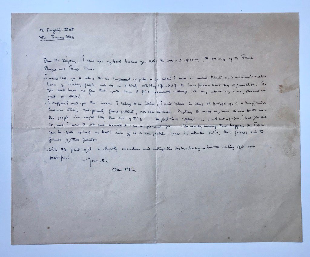 Previously Unpublished Letter from Olive Moore to Tom Driberg, c.1932