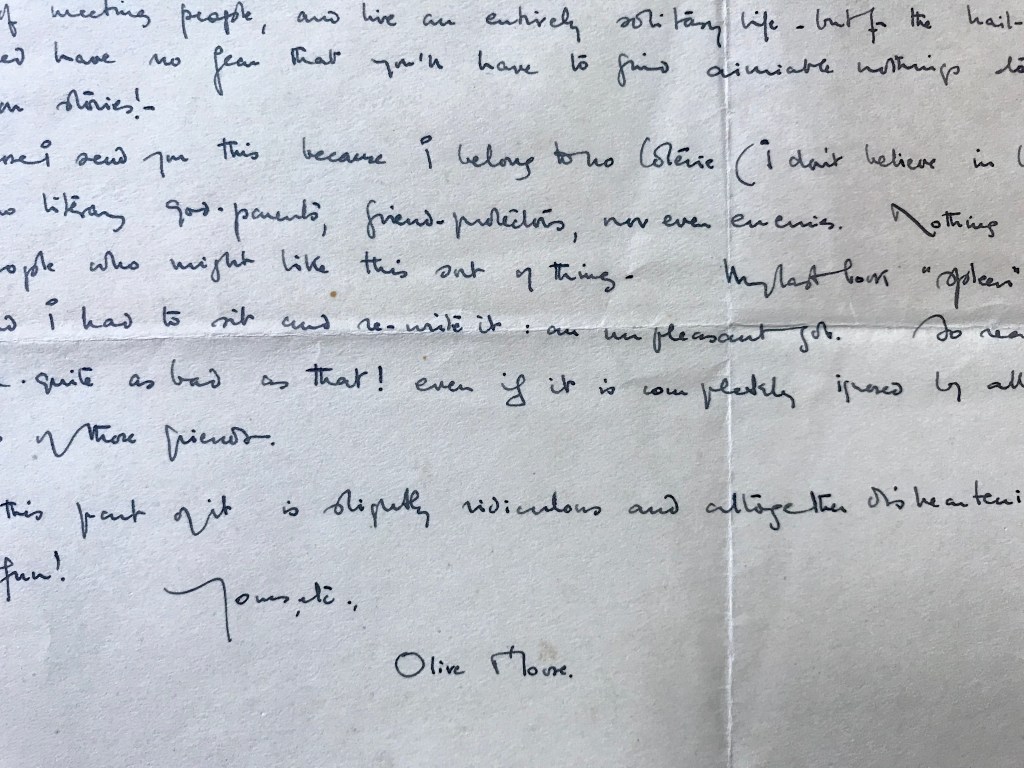 Detail of a letter written by Olive Moore, c. 1932.