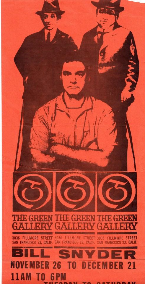 Farley recalls that the Green Gallery exhibition took place “a couple of years after the Spatsa show” and only included Mel Hanson and himself, but records of exhibitions at the Green Gallery are not readily available to confirm these recollections.[fn21] It is believed that Bill Snyder also went on to show at the new gallery, between 1961-66. One solo exhibition featuring Snyder in 1962, during the Firehaus days, has been confirmed by a notice in the San Francisco Examiner, November 25, 1962.