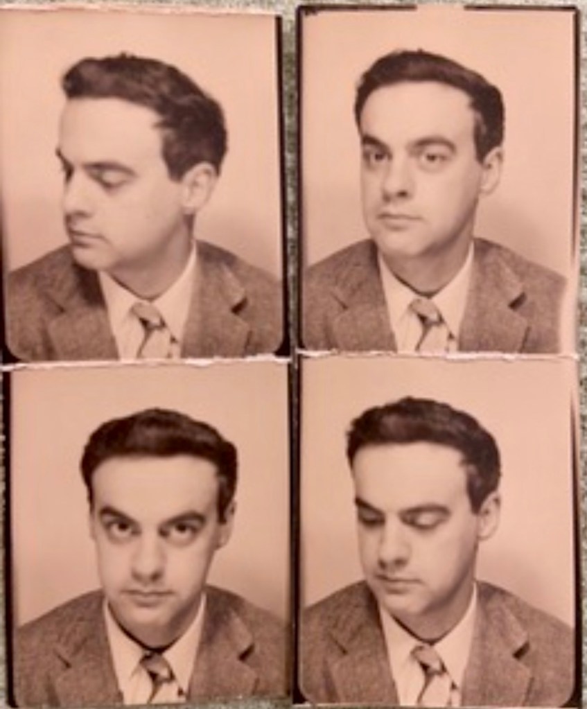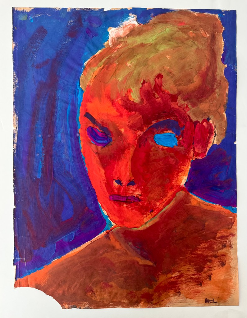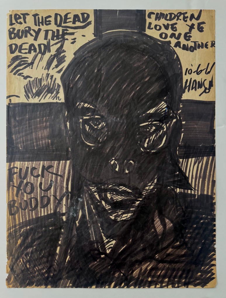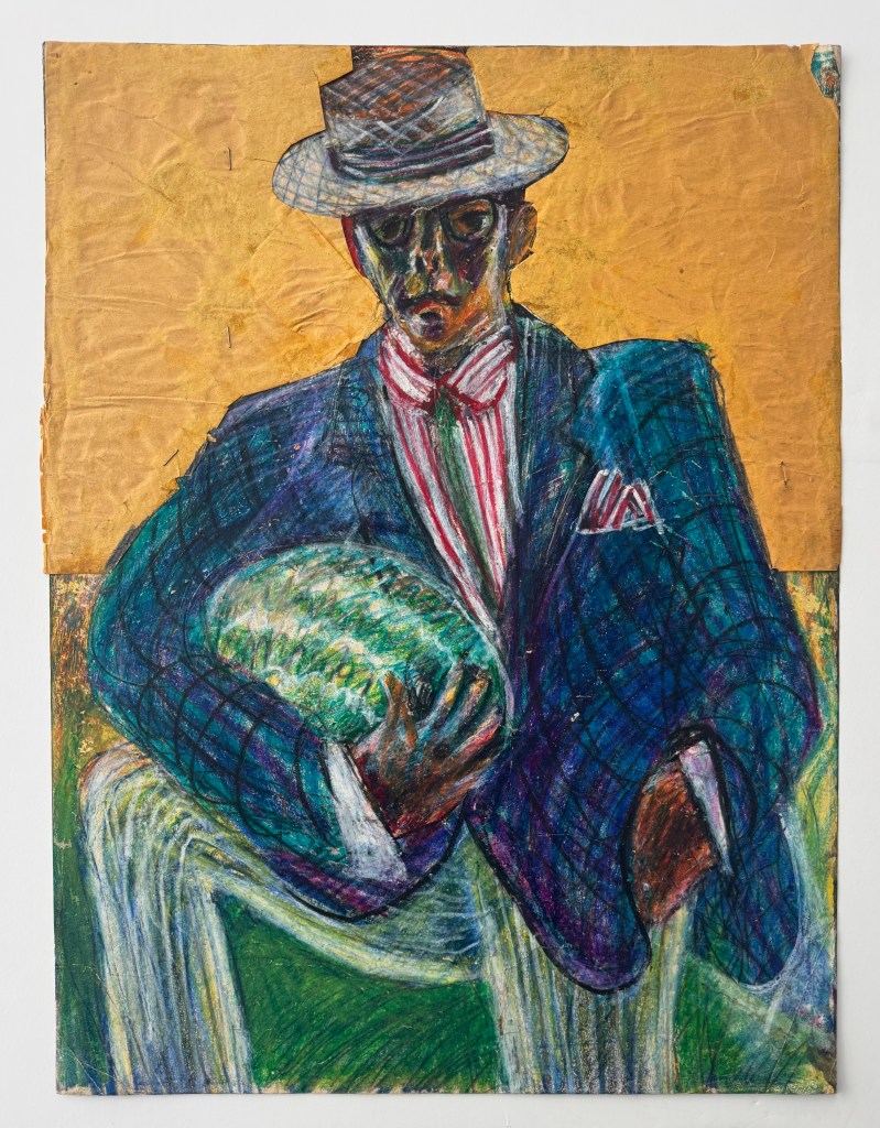 “But, as Belcher Studios Gallery demonstrates with their current exhibit, Mel Hanson: Retrospective 1938-1962, he did leave behind an impressive body of work. The exhibit — including portraits, self-portraits, collages, assemblages, and studies — doesn’t just show the tragedy of a promising artistic career cut short, but also the incredible talent and wry social commentary of a young man who was passionately devoted to his work. Hanson was primarily a figurative artist, although he was also influenced by German Expressionism, Pop- and Funk-art. This eclecticism only helps to compliment the quirkiness of the artist.