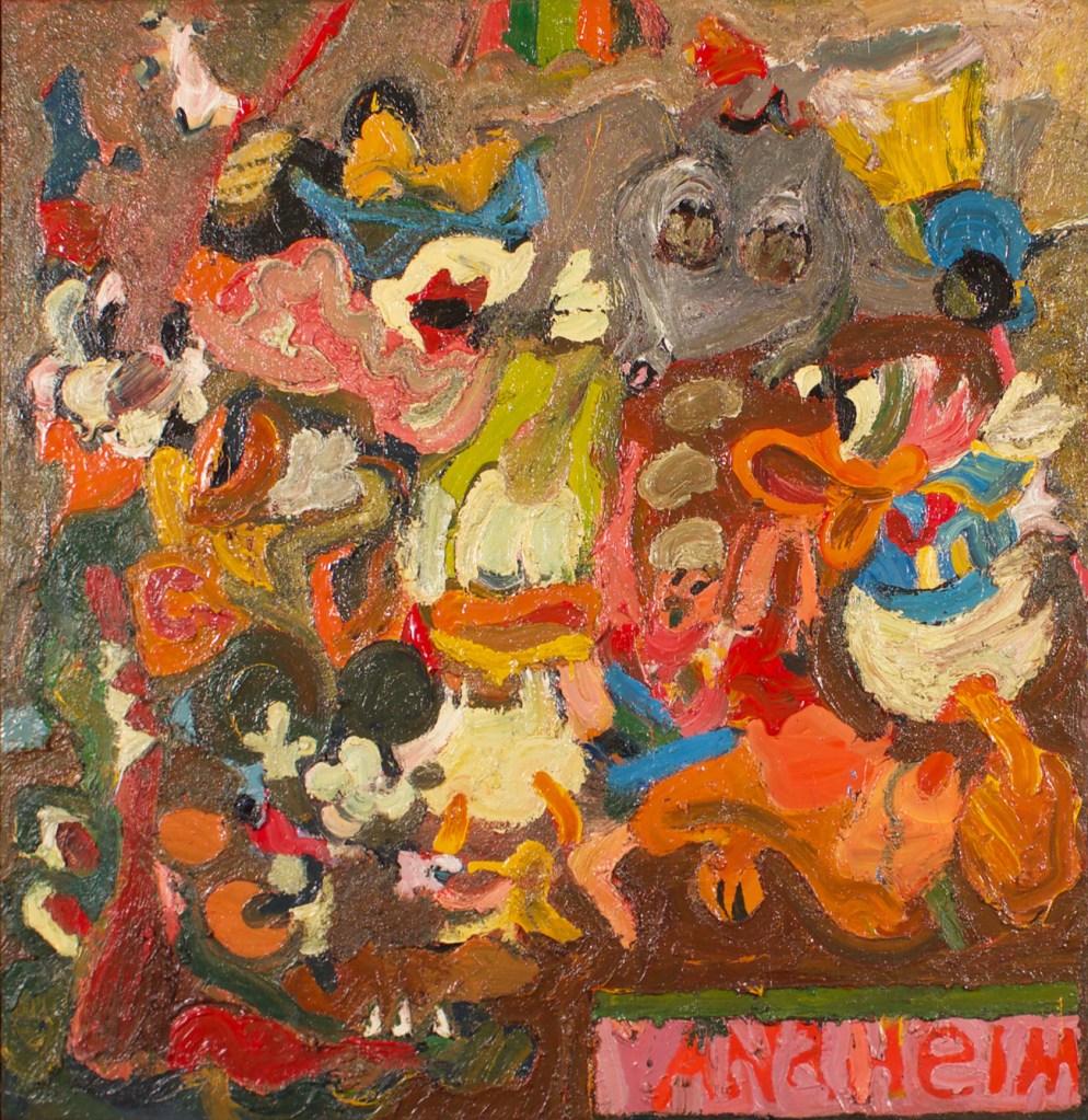 St. John’s reminiscences highlight how a group of painters working in close proximity influence one another: “I did as Farley did. I applied mounds of paint onto canvases stapled to the wall with images from dreams, imagination, and my interpretation of a [Nikolai] Gogol short story.” The latter Gogol reference is to St. John’s painting Mother and Father.