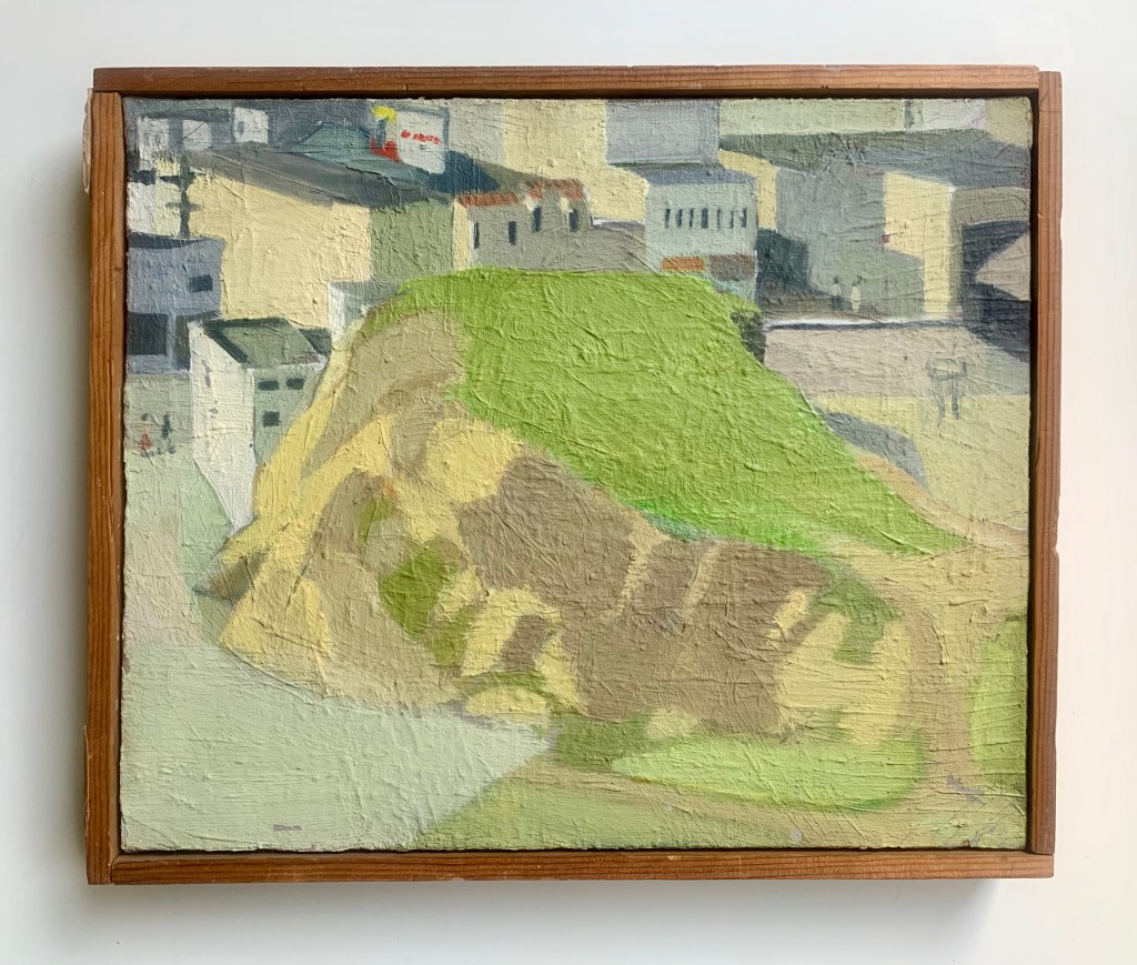 —On one of their trips to San Francisco, St. John planned to “take [his painting] Mother and Father to SFMOMA to enter it into a juried show. Earlier in the day, we dropped Mel off at his parent’s house, a low Wurster-like shingle house in a nice section of San Francisco to pick something up. Jack, Muhs, and maybe Mel and I visited Manuel Neri and Joan Brown, much to her consternation. I had thrown up on my sweater and was a mess. After a make do clean up we toured Manual’s studio where many of his pieces that would be acclaimed later were scattered throughout.” The excursion was lengthy and they had to abandon their original plan as “it was determined to be too late to enter my painting in the juried show at the museum.”