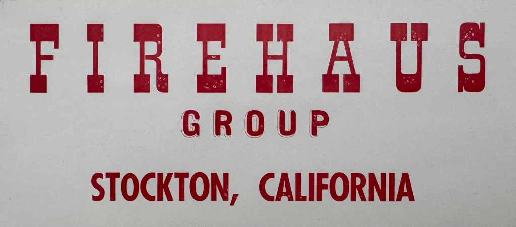For a few months in 1958, the group rented an abandoned fire station in East Stockton, which spawned their artist group’s name. Known as Engine House No. 3, it is located at 19 N. Pilgrim Street (between E. Webster Avenue & E. Main Street).[fn2] Bill Snyder told Bruce Nixon in the 1990s that “the [firehouse] studio costs them $200 a month” and that “it was a huge space in which to work.” Farley recalled making the arrangements, initially for just he and Hanson to use the firehouse as an art studio, but the others soon joined them; specifically, he remembers Jim Muhs working on a large sculpture at the firehouse, and Snyder started making work and hanging around there as well. Terry St. John visited the fire station studio to have a look at what was happening amidst the burgeoning group. At a party in Oakland, Farley had told him the “streets of Stockton are paved with gold.” Fresh out of UC Berkeley, it was enough to lure St. John to join the Firehaus. [fn3]