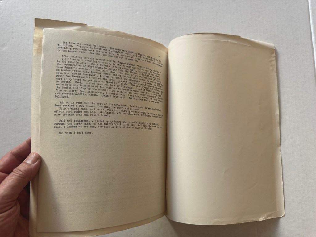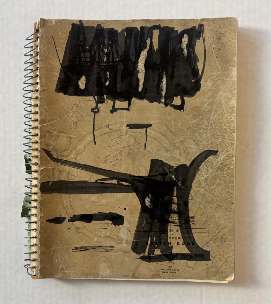 One way to align Muhs’ presence in different places, at or around the same time, is to surmise that he traveled back and forth from Los Angeles to Stockton and attended school intermittently, until he ultimately relocated back to Los Angeles. The notebook could be the product of activity from both geographic areas. Otis notes that Muhs completed his M.F.A. in 1960 but there is no indication when exactly he chose to stay in Southern California. That the notebook was found among Mel Hanson’s belongings in Stockton is the strongest indication it is a Firehaus relic. It is possible that Muhs forgot or abandoned the notebook in Stockton when he permanently returned to Los Angeles, or that it was gifted or traded with Mel Hanson for something, and thus, was later found among the personal belongings of Hanson, which the family picked up after his death in late 1962.