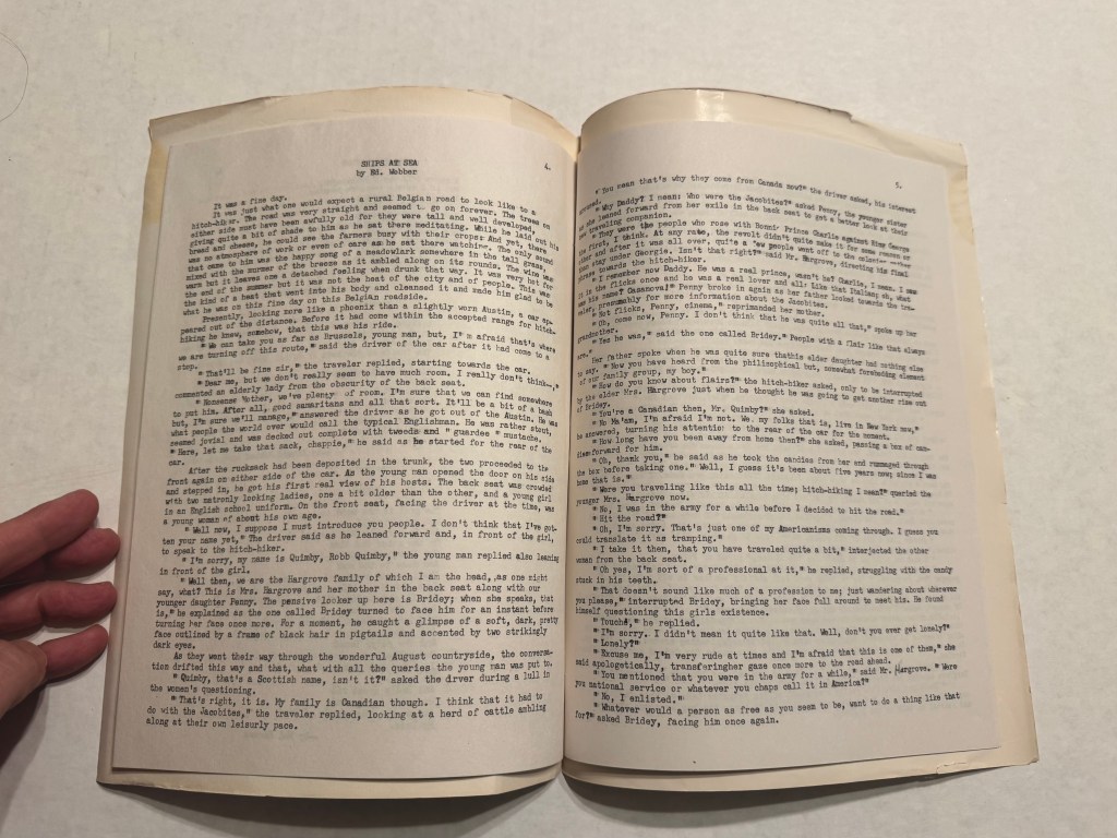 The publication does not include a masthead so the editors and publisher are unknown, however, the contributors include (in order of appearance): John Sibert, Mel Hanson, Steve Wishny, Edward Webber, Sarah Higgs, Peter Schipper, and Marjorie Moen. The magazine is not dated. It hints at a future issue, inviting students and faculty to submit manuscripts, although no subsequent edition has come to light.