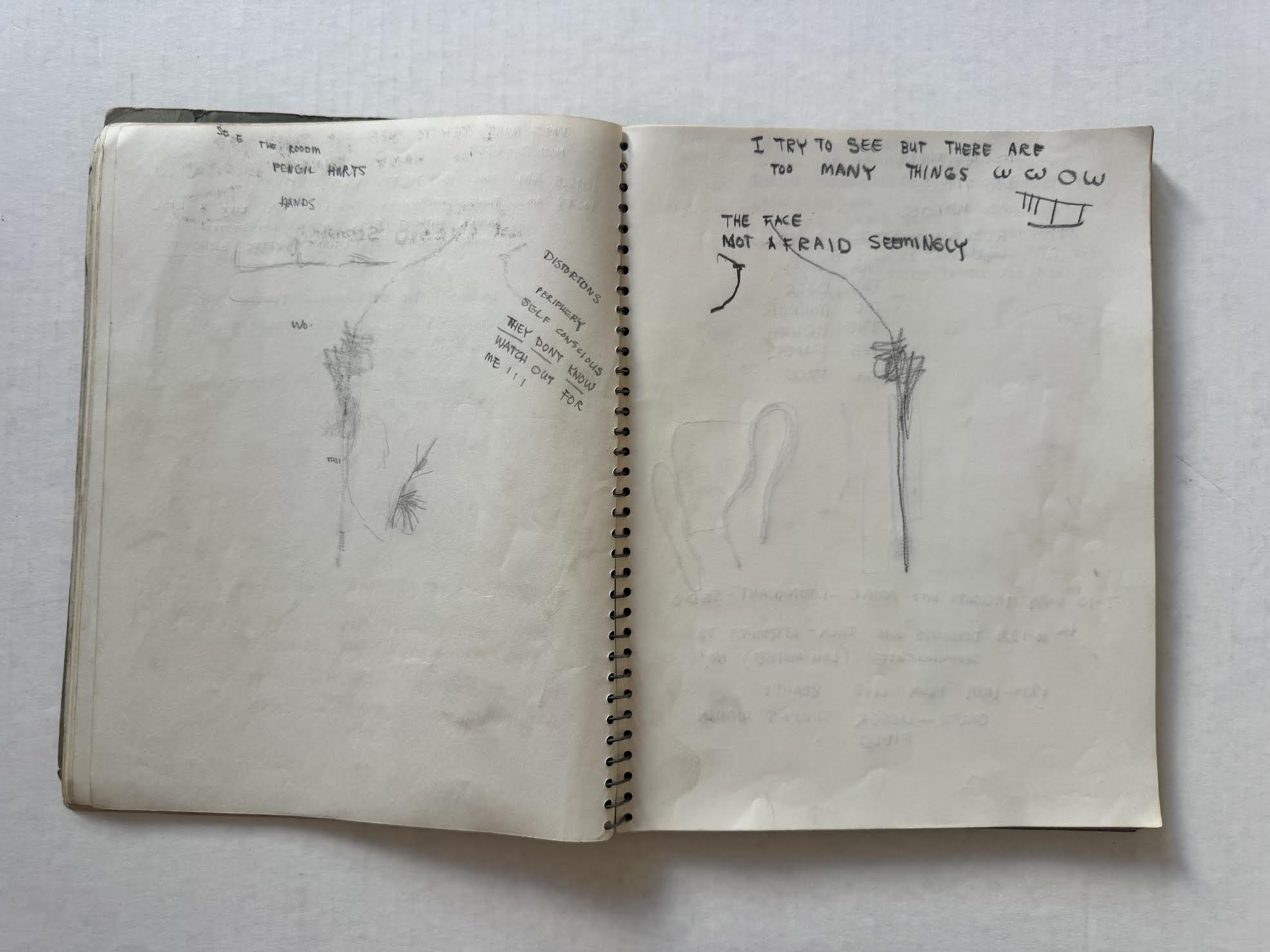 Muhs’ notes indicate he experienced the typical visual distortions, tactile sensations, time dilation, and the often competing emotional responses of euphoria and anxiety resulting from having sensory inputs altered. At one point he writes: “I TRY TO SEE BUT THERE ARE TOO MANY THINGS WWOW.”