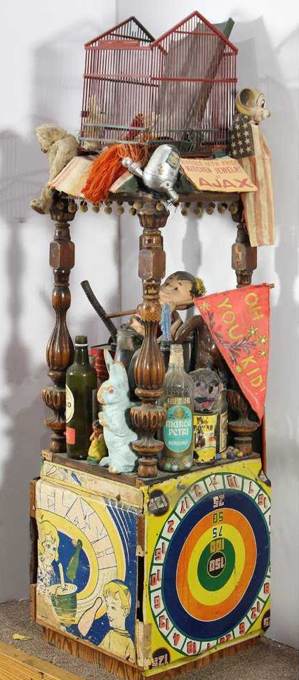 In a review of one of Hanson’s three consecutive posthumous exhibitions at the Green Gallery in 1964, art critic Alexander Fried noted that “[Hanson’s] assemblages bring together everything from swathed rags to tin cans.” Fried recounts that one of the assemblage’s, titled “Fertility Symbol,” which depicted a seated macabre figure “is so startlingly vivid that it set the neighbors into a burst of protest when it was visible in a show window.” [fn22] Unfortunately, Fried doesn’t go on to tell us how the neighbors’ protest was manifested.