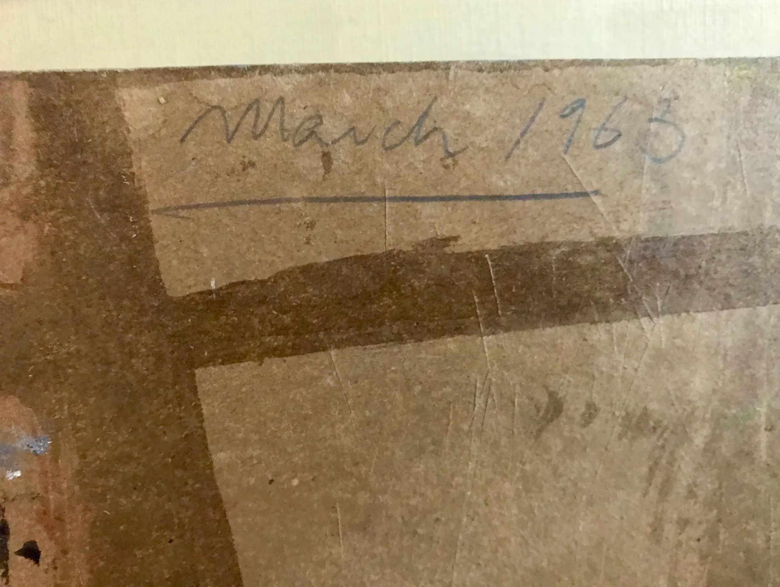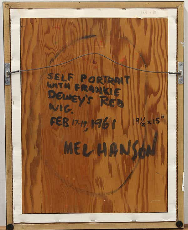 Mel Hanson died in the early 1960s, at the age of 24. His reputation as a notable post-WWII California artist has persisted due to the strength of the art he left behind, which consists of hundreds of paintings, drawings, and assemblage artworks. These demonstrate an adherence to the experimentation of the era, an early use of Pop elements, and thickly-painted compositions. A native of Stockton, Hanson exhibited in two of the premiere San Francisco’s avant-garde galleries of the 1950s and 60s. He died tragically on Saturday, December 1, 1962, after being struck by an automobile while crossing an intersection.