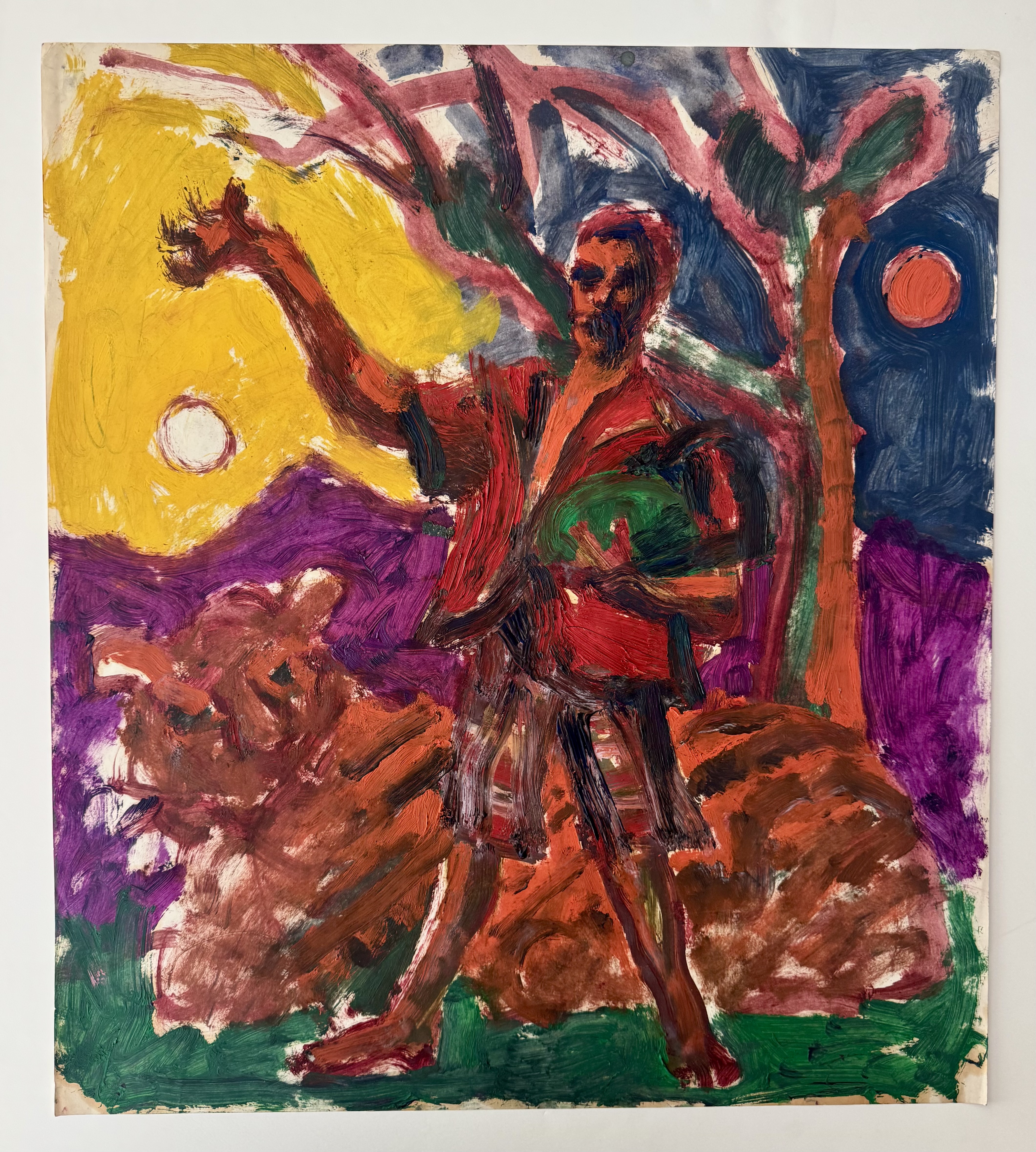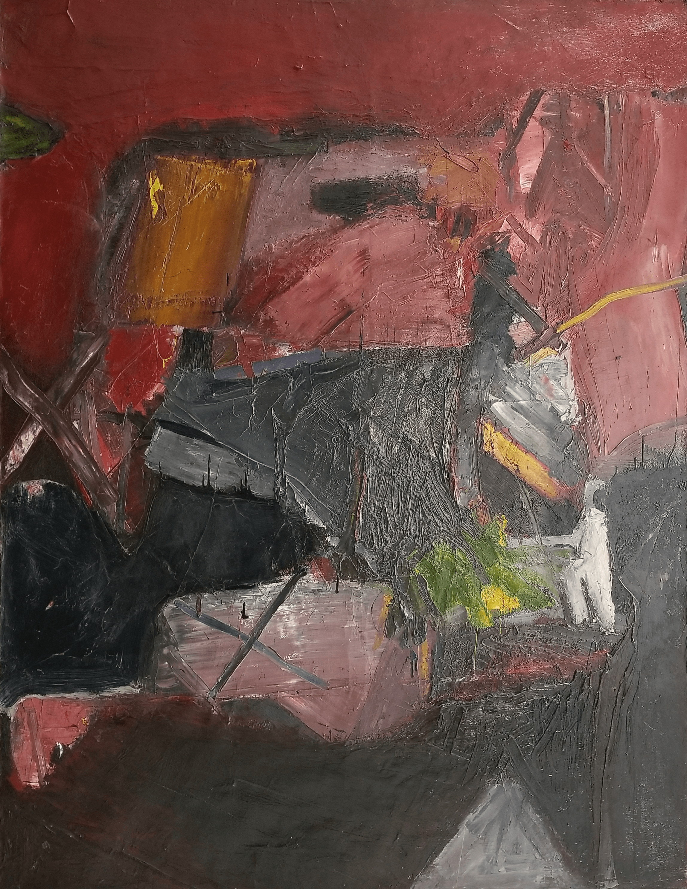 Despite all the drama, St. John credits Farley with supporting his work and encouraging experimentation. Speaking of a large painting of the period, Mother and Father, which St. John considers his best of that time, he warmly recalls their friendship. Farley pulled up in a cab with a bunch of paints: “I love this painting [Mother and Father]. I love Fuller in Oil. I owe this to Farley. One afternoon he pulled up his cab to the studio. Unloaded vast amounts of Fuller Color in Oil. Twenty minutes later it was all on the canvas, his whole paycheck.” As St. John recalls “Farley was breaking down my resistance to experiment, as he was all experiment.”