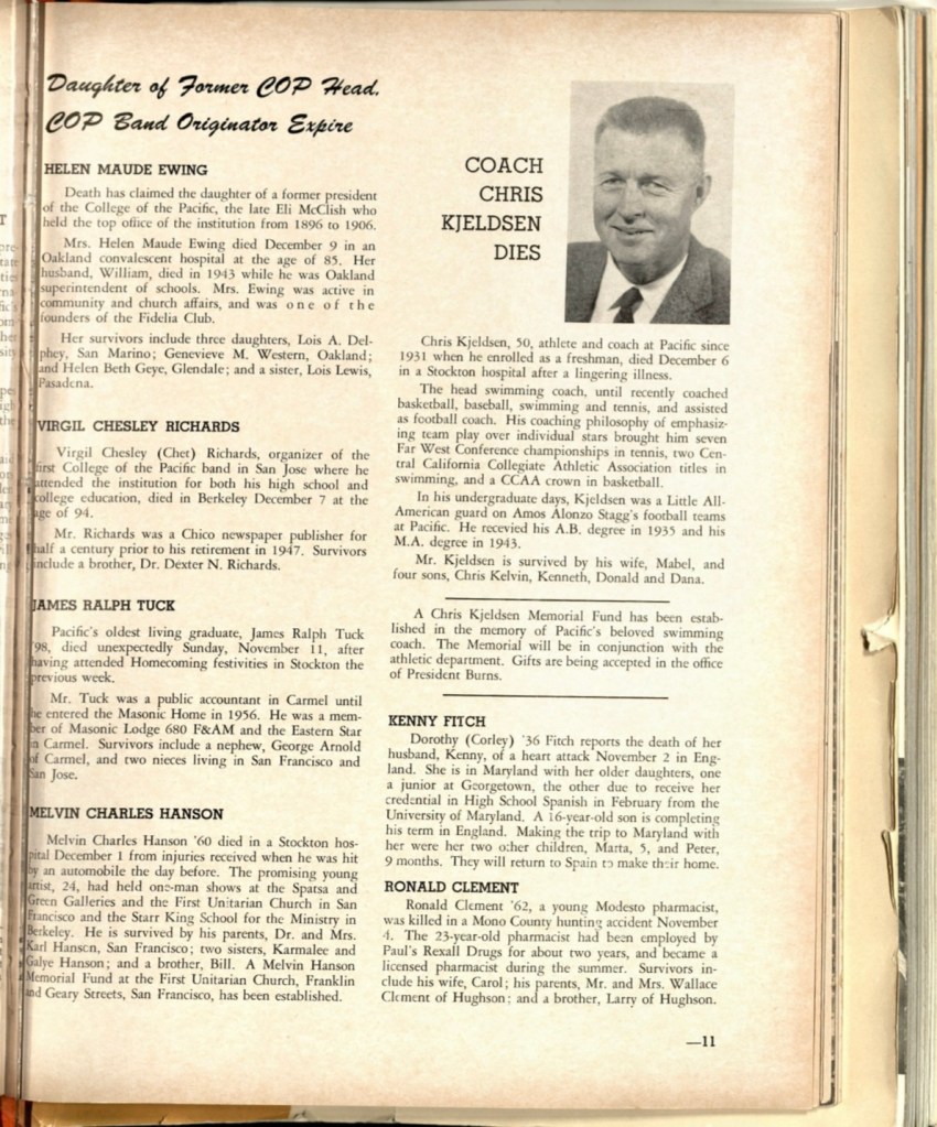 The bulletin of the University of the Pacific, the Pacific Review, also published an obituary in the December 1962 issue: