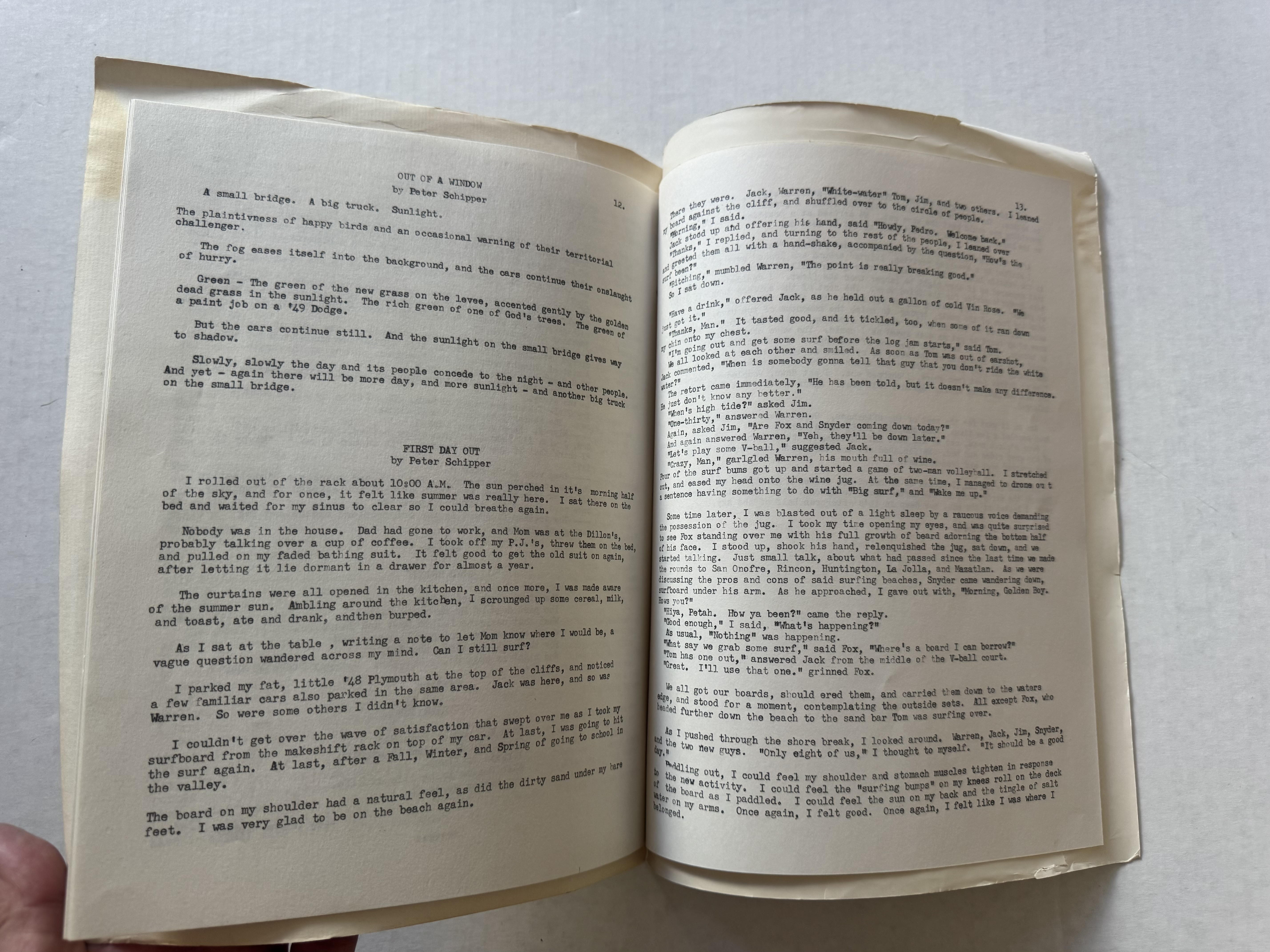 “The capers also included raiding the Art Department at COP for tempera. Farley went there so he knew the hours when the studios would be empty. Farley had a beat up old sedan with doors that flopped opened when moving. We each grabbed as many tempera bottles as we could. We raced to his car and threw the loot in and sped off as fast as his car would go holding on to doors that were flopping open.”