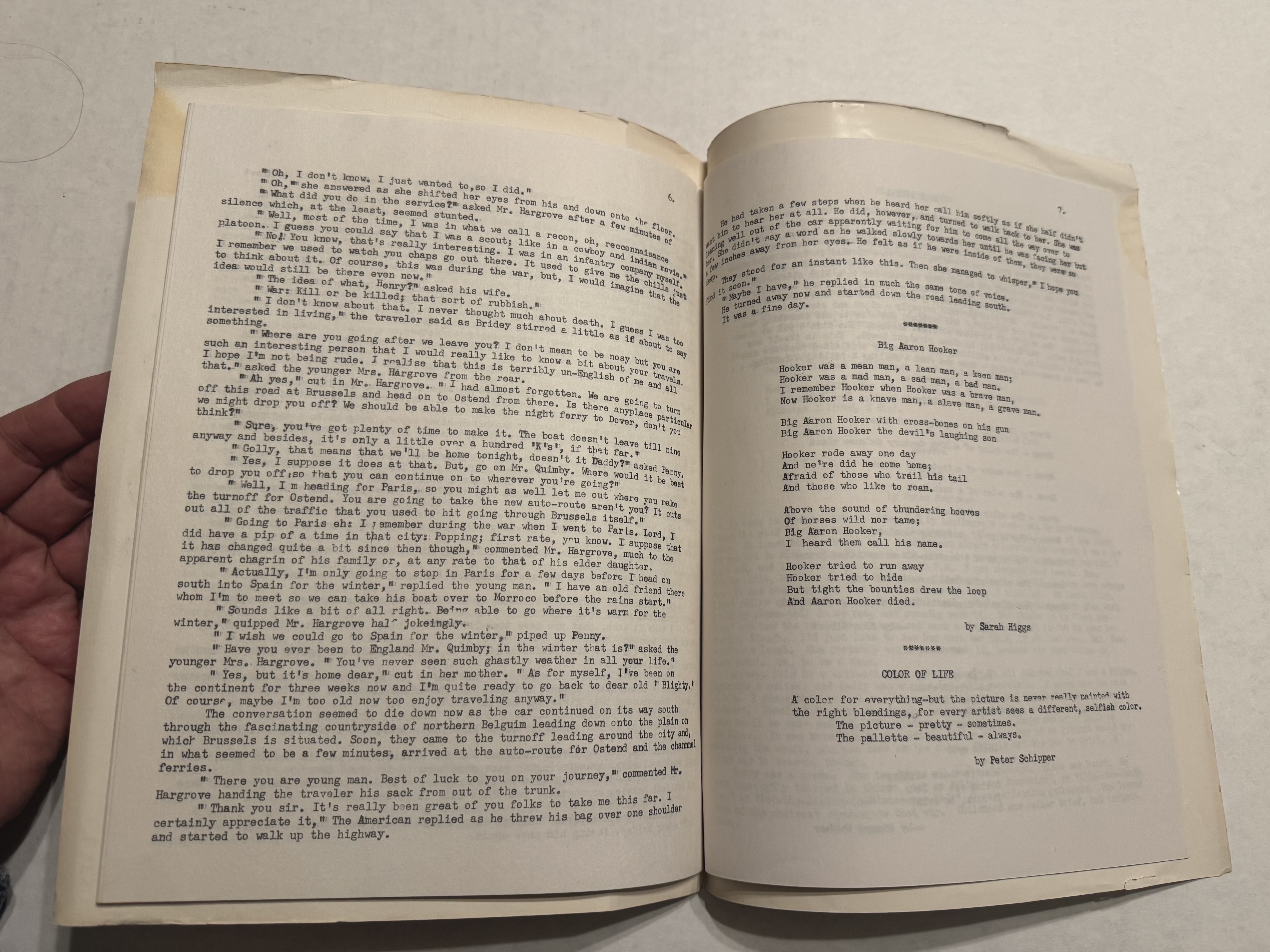 The publication does not include a masthead so the editors and publisher are unknown, however, the contributors include (in order of appearance): John Sibert, Mel Hanson, Steve Wishny, Edward Webber, Sarah Higgs, Peter Schipper, and Marjorie Moen. The magazine is not dated. It hints at a future issue, inviting students and faculty to submit manuscripts, although no subsequent edition has come to light.