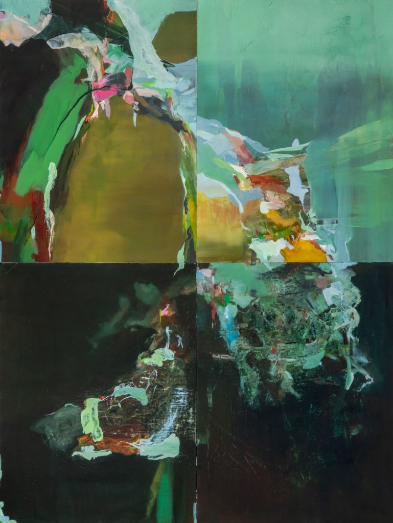 Contained herein are the visceral; the emotions that denote energy and breath. Within these realities a powerful and primal understanding of our surroundings takes hold. Nature is filled with these convulsions. They are effortless and seem subtle, but if you look closely, they are cataclysmic too. In a single painting you can see a patch of vegetation growing, and nearly simultaneously watch it collide into something dying, while another color interferes to render water cascading in another area of the composition. All of this coexisting, just as you would find in nature.