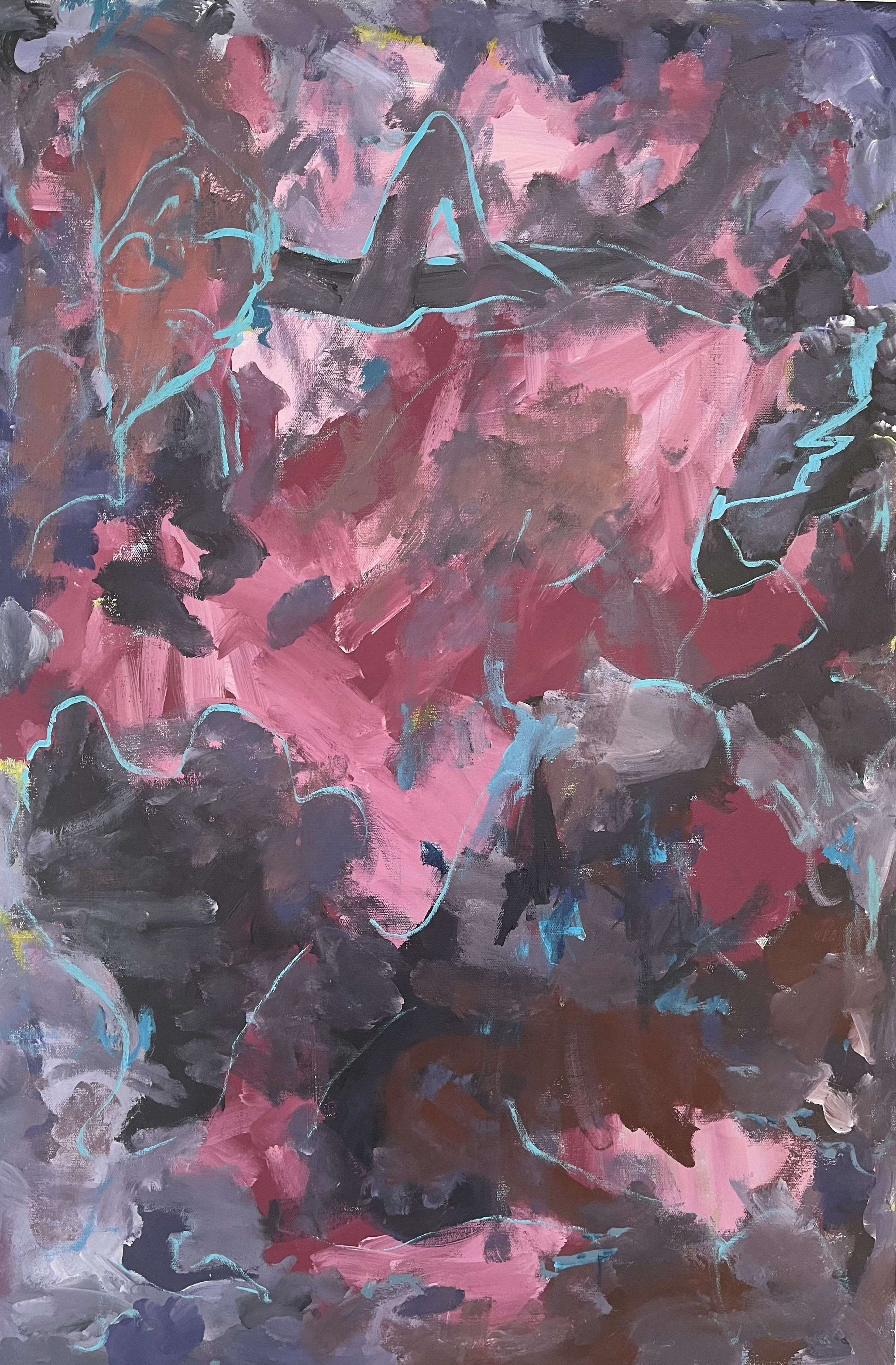 The seeming absence of control gives these abstract paintings a barbaric or primitive quality, an anti-realism even. The lack of linearity releases outcome expectations for Smith; while the disintegration of edges lets the viewer’s mind seek visual answers. In loose painting, margins are lost and the resulting blurring of paint offers the visual ambiguity that merges both abstraction and shape oriented realism.