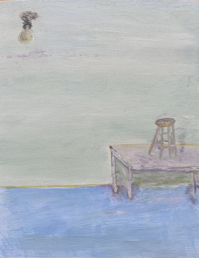 Tamsin Spencer Smith exhibits over 20 paintings, all from 2023, in a pop-up show at Upper Market Gallery this coming weekend, Friday, March 24th to Sunday the 26th. Two primary styles comprise the work, one utilizes a loose painting method that purposely obliterates literal reading of the composition, yet which retains shapes and forms to advance verisimilitude; and, another that presents seemingly naive, figurative paintings, many made in entirely flat rendering of interior scenes. At the opening, Smith will augment the visual presentation with an offering of her poetry, in a limited edition of 50 hand-bound chapbooks, each with an original painting on the cover.
