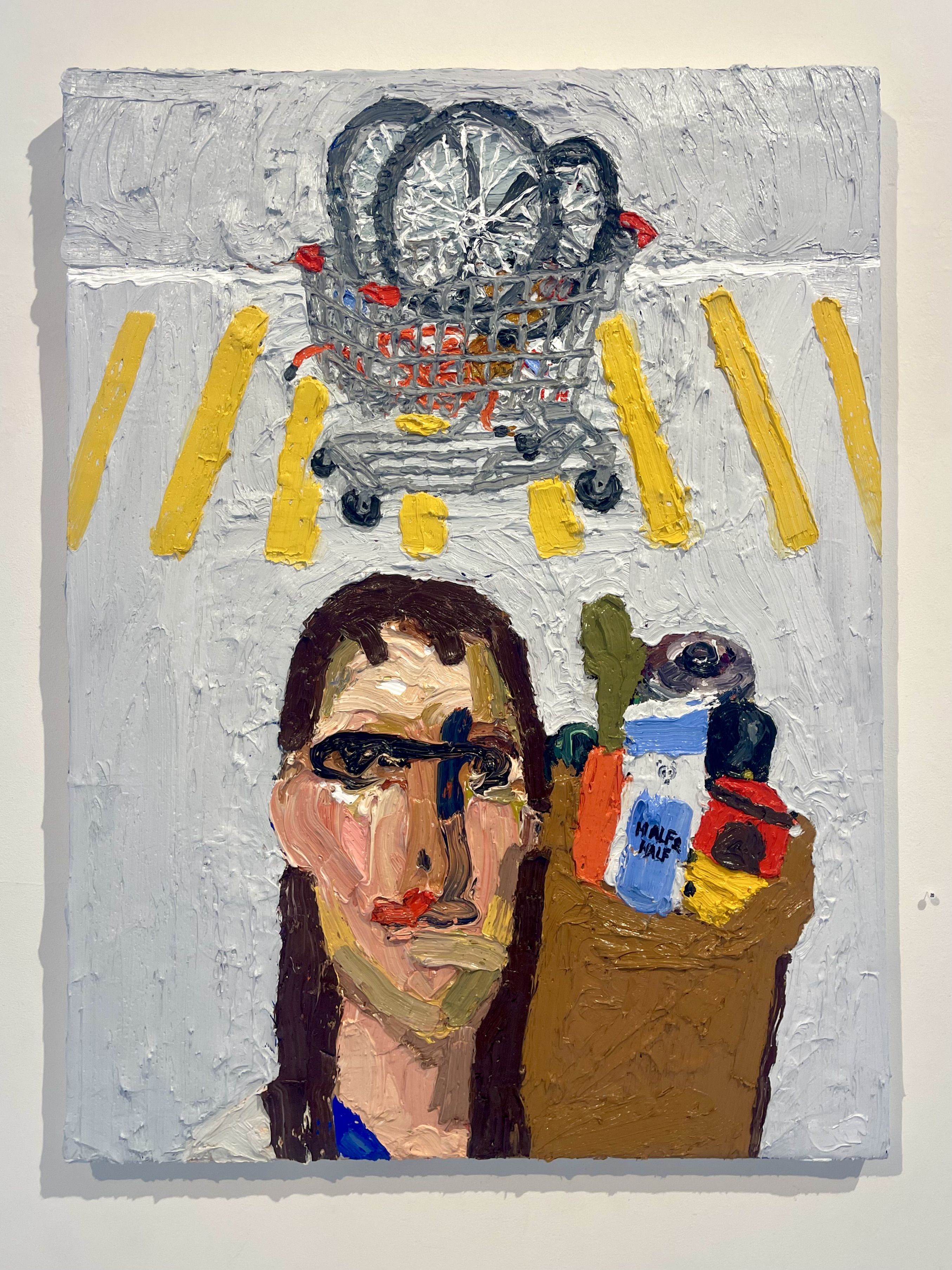 Villalba also utilizes shadows in a way in which he transforms dark spaces into shapes rather than just a platform in which to place nearby a person or object. Shadows ultimately can be placed where they don’t exactly belong, and in shapes lending to some allowances, furthering the painting illusion. [e.g., Self-Portrait Beneath a Window, oil on canvas, 30 x 24 inches, 2023; and, Self Portrait with Model, oil on canvas, 36 x 36 inches, 2023]. In other cases, the shadow is ignored altogether. [e.g., In Conversation with Jason, oil on canvas, 30 x 24 inches, 2023; and, Michelle with Groceries, oil on canvas, 30 x 24 inches, 2023]. Philip Guston is one artist who often left shadows in his paintings working in opposite directions, meaning there were probably competing and multiple light sources presented simultaneously. Villalba embraces the shared understanding that shadow needn’t be rendered truthfully, it doesn’t have to act as if in nature to be used for its own artistic elements. Bay Area Figurative painter Paul Wonner once acknowledged this, saying “Eventually I realized that I could connect compositional elements with shadows. People thought that was strange, because the shadows were doing things that they couldn’t do naturally.”