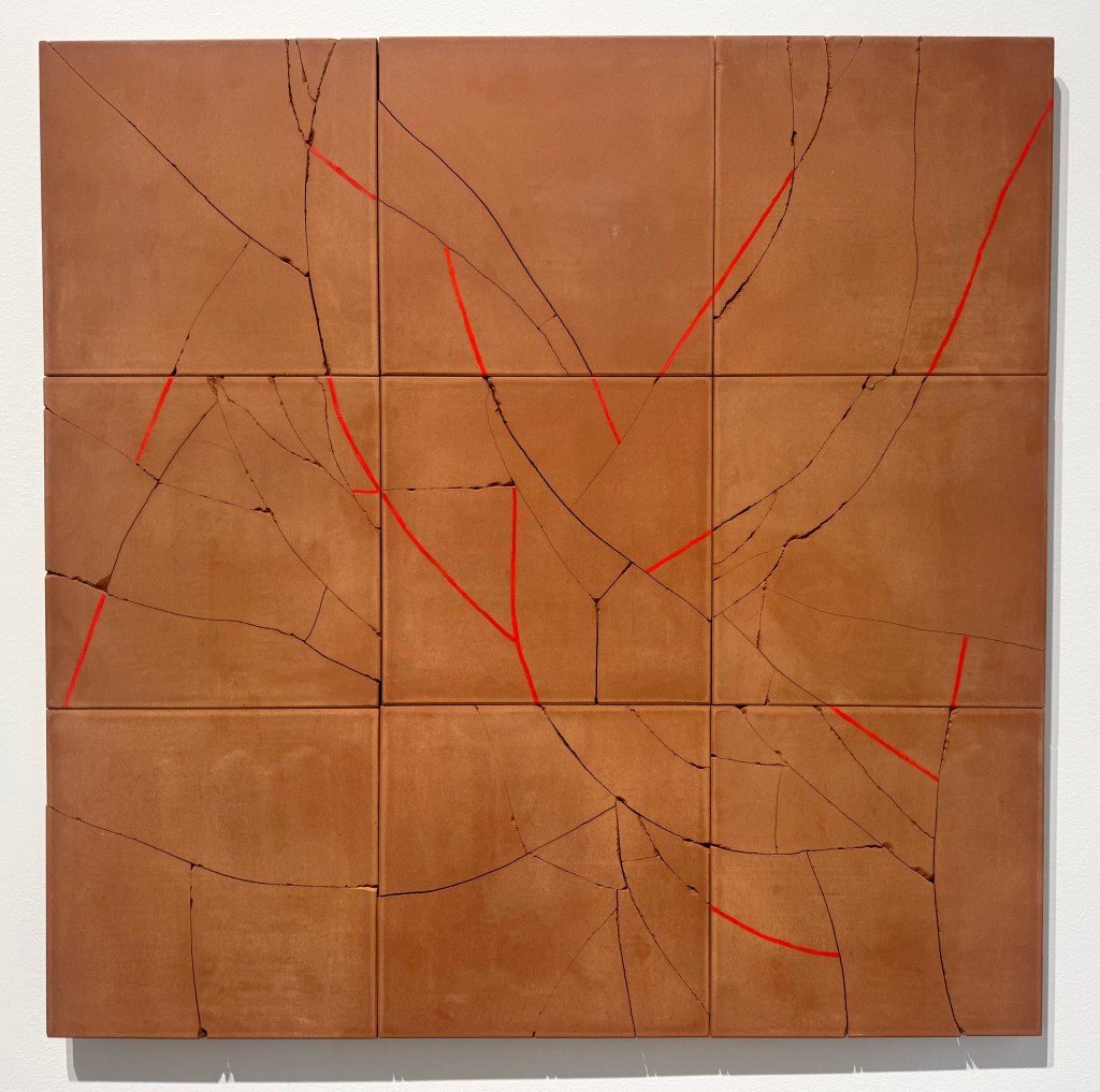 Jim Melchert & Galen Melchert, “The Move That Won the Game” (Jim’s Final Tile), broken and fired porcelain tile with glaze, 2023.