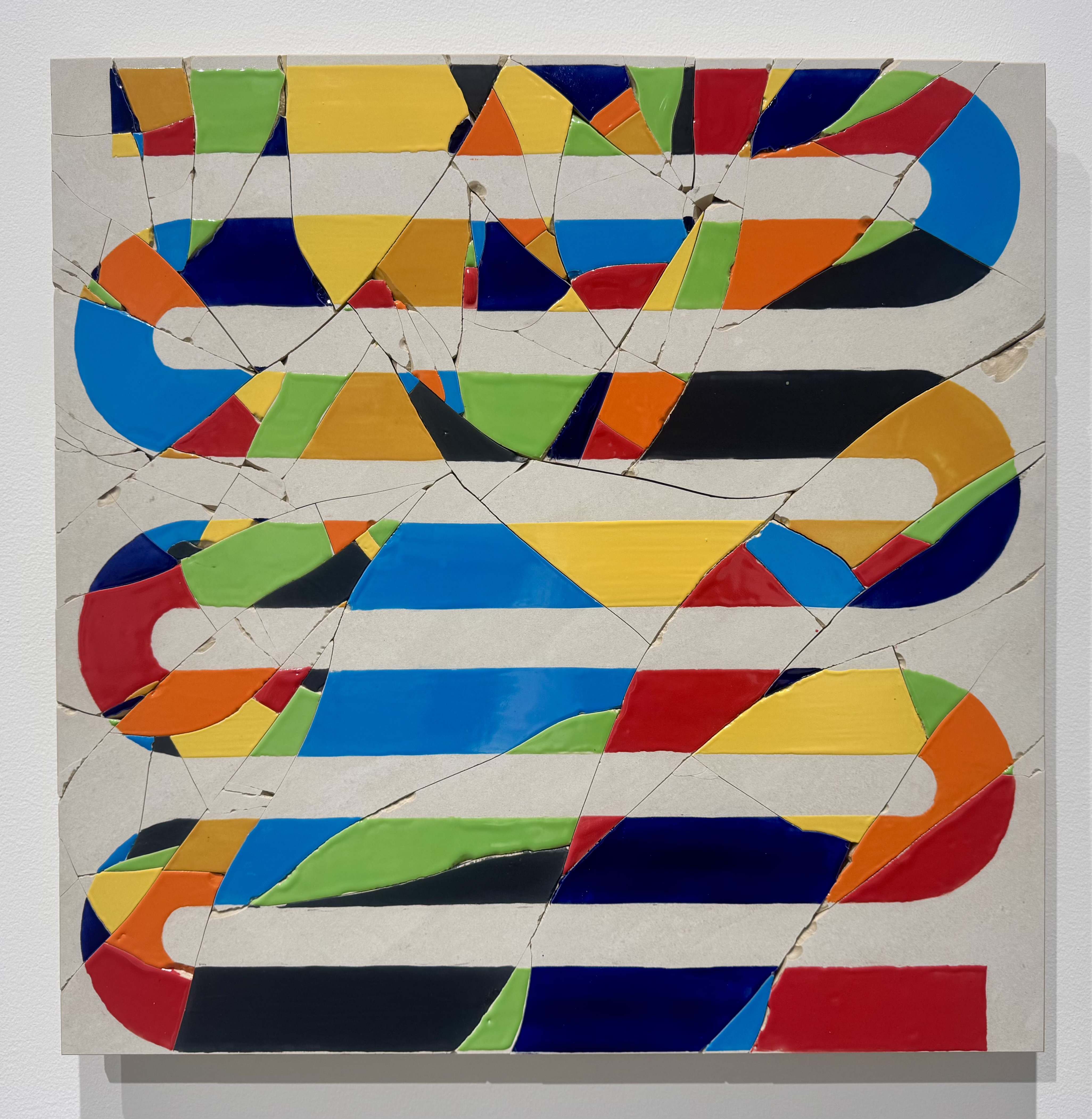 Jim Melchert, “Estate No. 101,” broken and fired porcelain tile with glaze, 2023.
