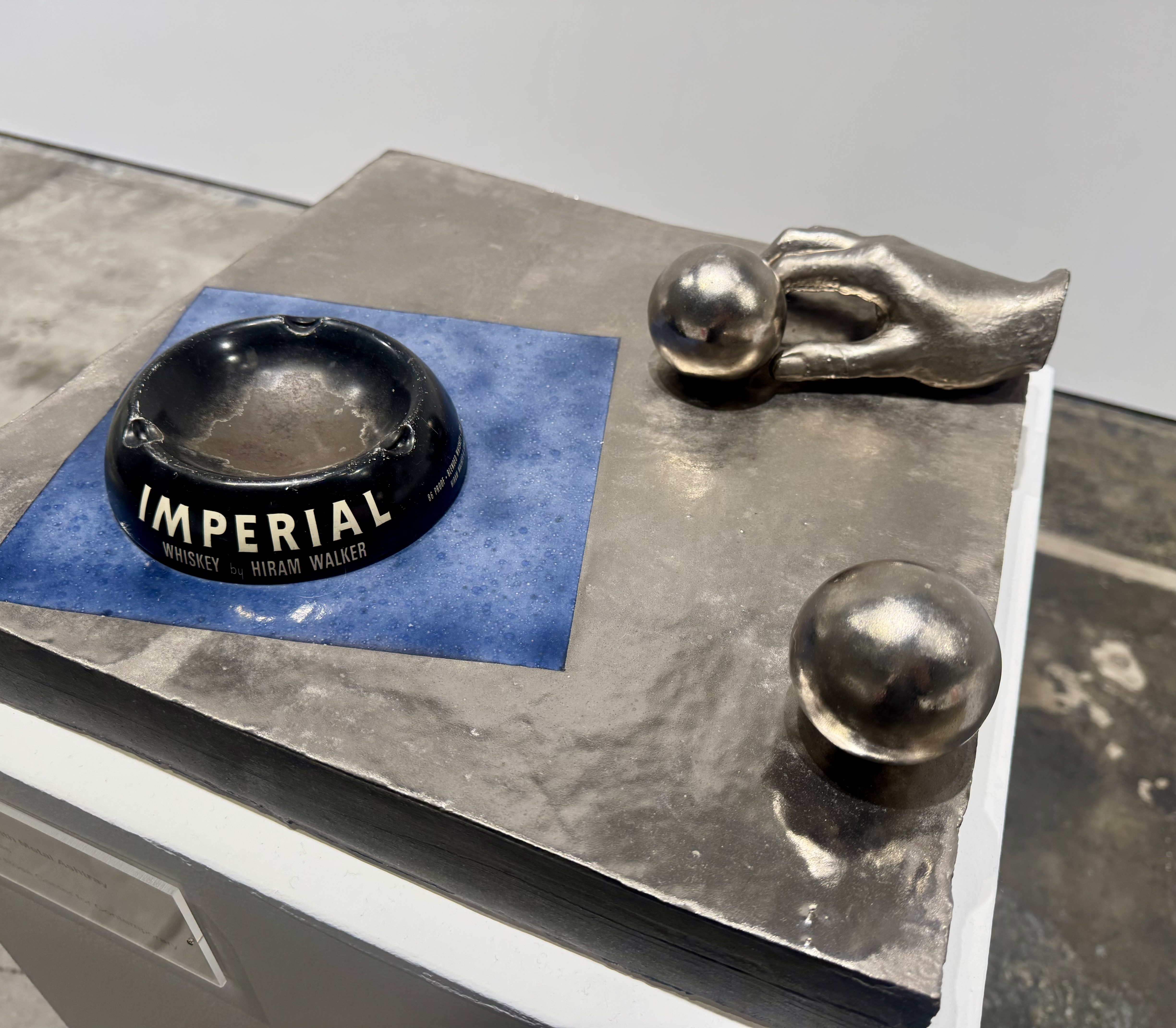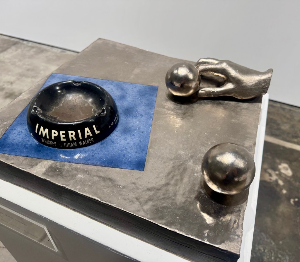 Jim Melchert, “Photo Negative with Metal Ashtray,” metal, clay, and glazes, 1968.