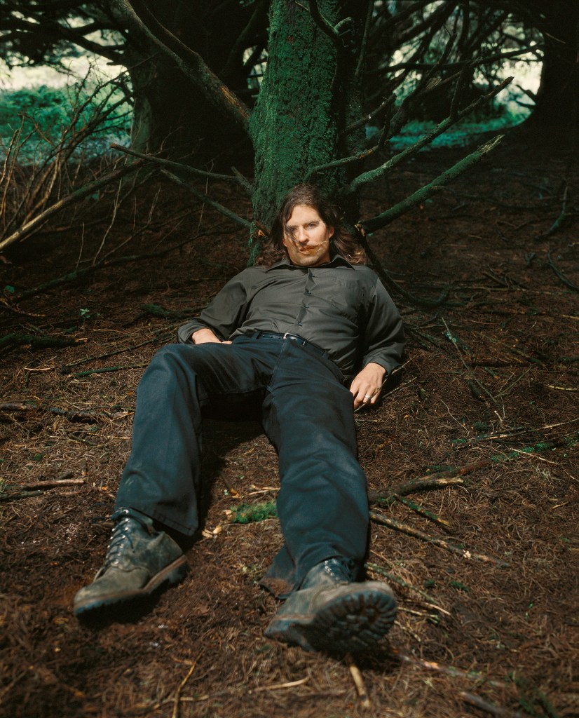 The best photograph of all Chris Buck, San Francisco, CA (2006) captures the arborist in repose. At the time, this Chris Buck, worked as an inspector for San Francisco’s Bureau of Urban Forestry. He is presented in a languid pose, almost lethargic. It’s as if we’ve stumbled upon a vampire at rest amidst the dark overgrown shade of trees. The hair across the face, a direct gaze, and heavy work boots in the foreground all keep the viewer wondering what they’re looking at. The peering back at the viewer suggests knowledge and confidence, yet there is something out of place, as if we’ve interrupted something. A male nymph or dryad-like quality, among the trees symbolizing one with nature, and a certain atmospheric narrative is suggested.