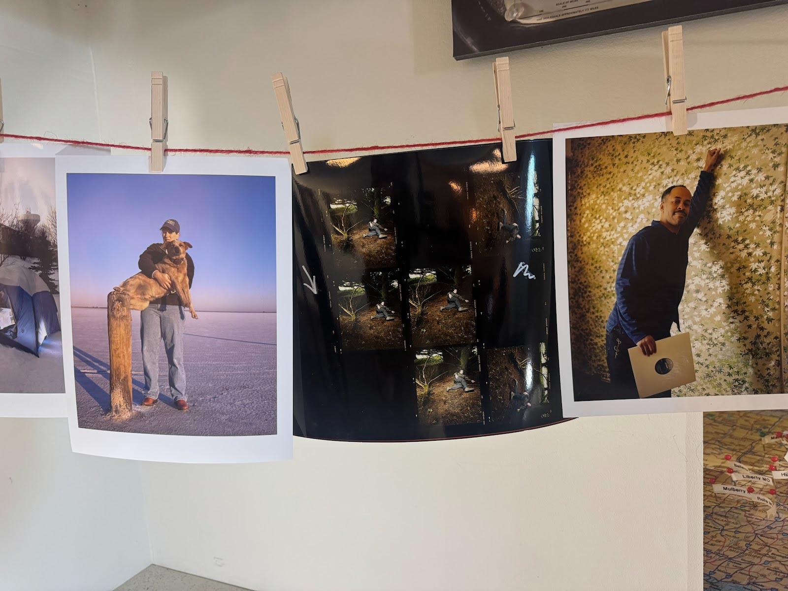 The exhibition is part of the 3rd St Creative Artery led by Sarah Stangle (Chris Buck, the arborists’ wife). Stangle has thoughtfully assembled ephemera from the project including various photo outtakes and copies of photographer Chris Buck’s personal notes, calendar book, and geographic maps pertaining to his various subjects.
